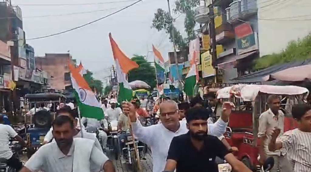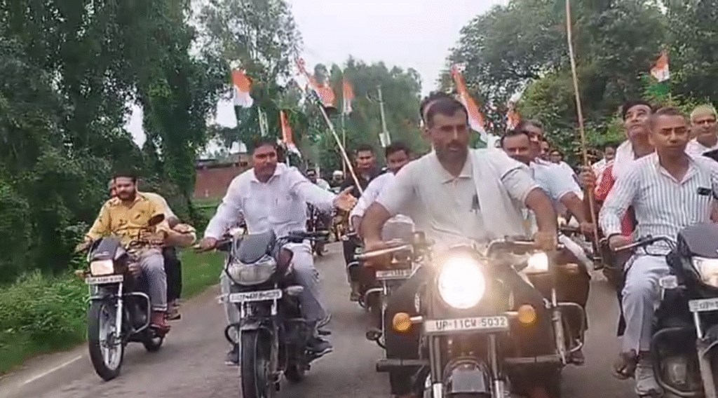 यात्रा का मार्ग नगर के प्रमुख इलाकों से होकर गुजरा, जहां हर उम्र के लोग इस ऐतिहासिक पल को देखने और इसमें शामिल होने के लिए खड़े दिखाई दिए। बाईकों पर सवार युवाओं के हाथों में लहराते तिरंगे और आंखों में देशप्रेम की चमक पूरे आयोजन की पहचान बन गई। देहात मंडल अध्यक्ष मांगेराम सैनी ने सभी से अपील की कि 15 अगस्त पर अपने घरों पर तिरंगा फहराएं और राष्ट्र की एकता को मजबूत करें।यात्रा के समापन तक देहात नगर में जयकारों की गूंज बनी रही और वातावरण देशभक्ति के रंग में सराबोर रहा। यह तिरंगा यात्रा न केवल हर घर तिरंगा अभियान को मजबूती देने का कार्य कर गई