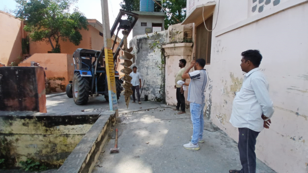 जिसको लेकर मंदिर कमेटी के लोगों ने लगातार कई बार विद्युत विभाग को शिकायत की थी इसके बाद आज जेई अजय कुमार शर्मा के नेतृत्व में विद्युत विभाग की एक टीम देवी तालाब पर पहुंची जहां पर ठप पड़ी विद्युत लाइन को सही कराया गया एवं क्षतिग्रस्त विद्युत पोल को निकलवा कर दूसरा विद्युत पोल वहां लगाया गया जेई अजय शर्मा ने बताया की नगर मे और भी कई जगह विद्युत पोल क्षतिग्रस्त है जिनको निकलवा कर दूसरा लगवाए जा रहे हैं