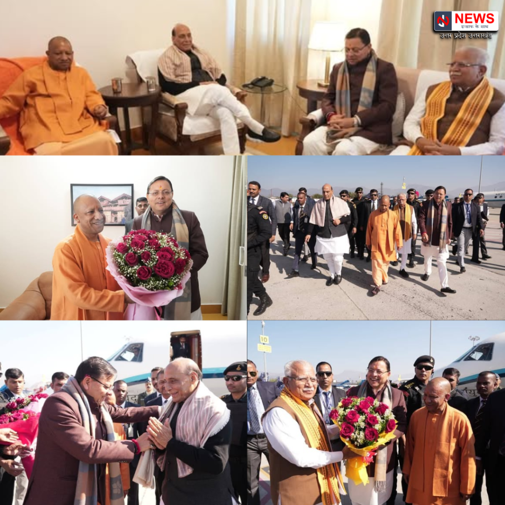 हरिद्वार, 6 फरवरी 2026 – उत्तराखंड की धर्मनगरी हरिद्वार में आयोजित “गुरुदेव समाधि मंदिर प्रतिमा स्थापना समारोह” में भाग लेने के लिए केंद्रीय रक्षा मंत्री श्री राजनाथ सिंह, केंद्रीय मंत्री श्री मनोहर लाल खट्टर और उत्तर प्रदेश के मुख्यमंत्री श्री योगी आदित्यनाथ शुक्रवार को देवभूमि उत्तराखंड पहुंचे। जौलीग्रांट एयरपोर्ट, देहरादून पर मुख्यमंत्री श्री पुष्कर सिंह धामी ने इन सभी गणमान्य व्यक्तियों का पारंपरिक तरीके से स्वागत एवं अभिनंदन किया।