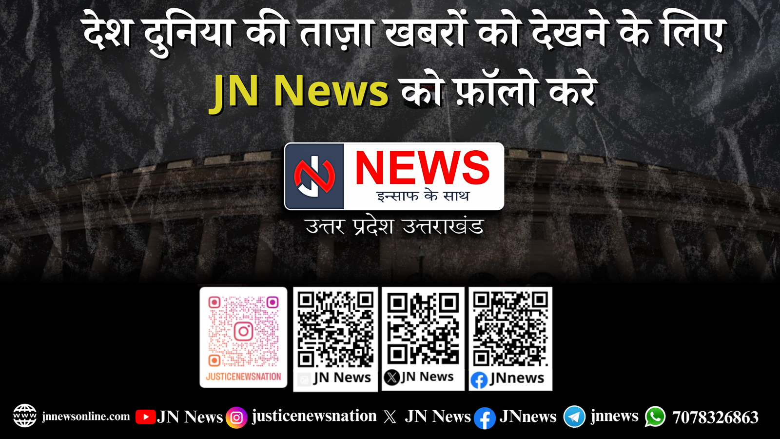 JN News उत्तर प्रदेश और उत्तराखंड का सबसे विश्वसनीय और तेज़ हिंदी न्यूज़ चैनल है, जो आपको अपने आसपास की सभी ताज़ा खबरों से अवगत कराता है। हमारा उद्देश्य है, आपको सटीक और निष्पक्ष जानकारी प्रदान करना। चाहे वह स्थानीय समाचार हों, राज्य की राजनीति हो, या फिर मनोरंजन और खेल की दुनिया से जुड़ी खबरें, JN News हर खबर को आपके पास पहुँचाता है सबसे पहले और सबसे सटीक रूप में।