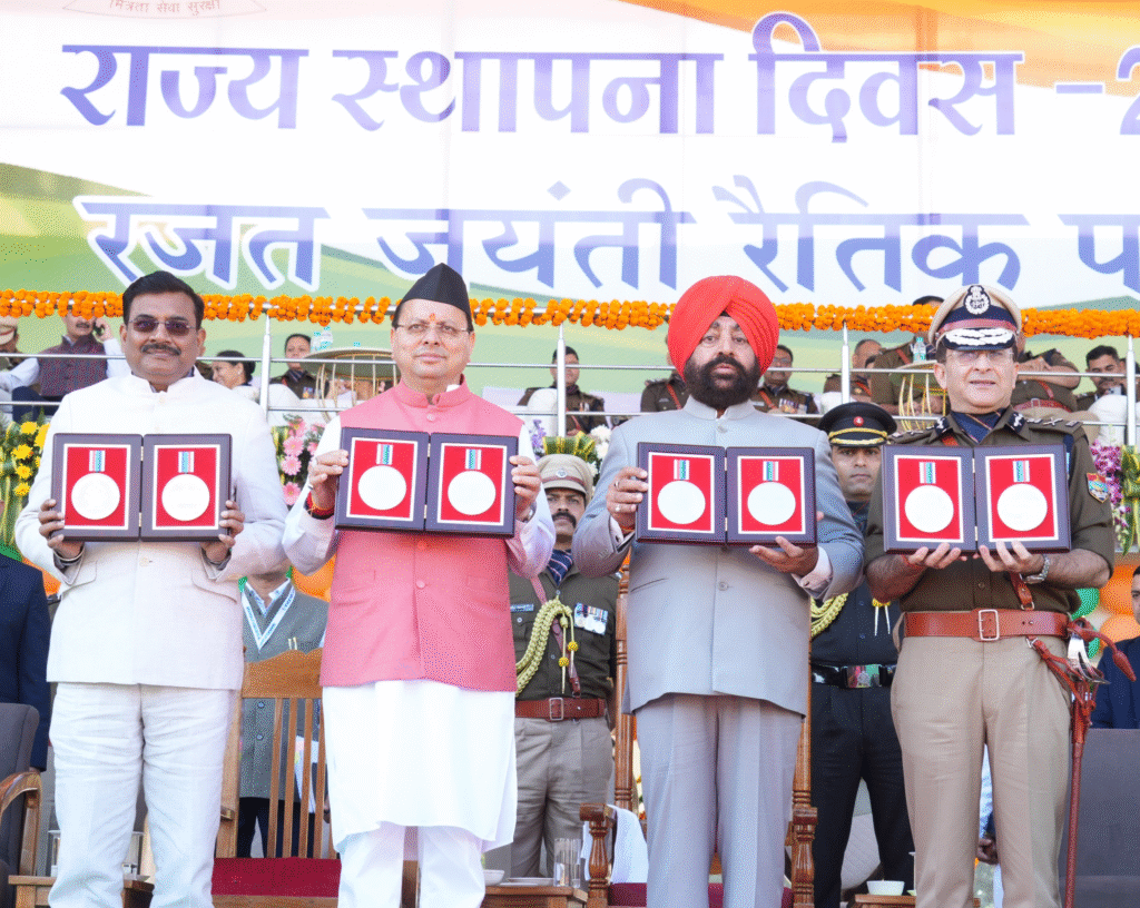 राज्यपाल ने उकृष्ट सेवाओं के लिए ‘राष्ट्रपति पुलिस पदक’ एवं ‘पुलिस पदक’ प्राप्त पुलिस अधिकारियों को सम्मानित किया। रजत जयंती समारोह के अवसर पर इस वर्ष का उत्तराखण्ड गौरव सम्मान निशानेबाज पद्श्री जसपाल राणा, उद्यमी एवं समाजसेवी देव रतूड़ी, अभिनेता एवं लेखक स्व. टॉम ऑल्टर, उत्तराखण्ड राज्य आंदोलनकारी स्व. सुशीला बलूनी, चिपको आंदोलन की जननी स्व. गौरा देवी, भूवैज्ञानिक स्व. खड़ग सिंह वल्दिया, वीरांगना स्व. तीलू रौतेली एवं लेखक स्व. शैलेश मटियानी को दिया गया। राज्यपाल लेफ्टिनेंट जनरल गुरमीत सिंह (से नि) एवं मुख्यमंत्री श्री पुष्कर सिंह धामी ने उत्तराखण्ड गौरव सम्मान-2025 प्रदान किए। उक्त महानुभावों की अनुपस्थिति में यह सम्मान उनके परिजनों द्वारा प्राप्त किया गया।